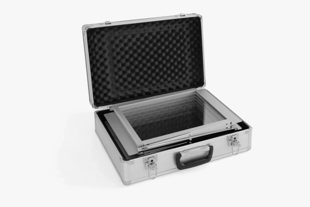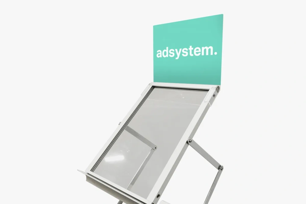 The adFolder stand is easy to assemble and disassemble, allowing for quick setup of your exhibition booth. Additionally, the set includes a reinforced case that facilitates transport and storage of the product.