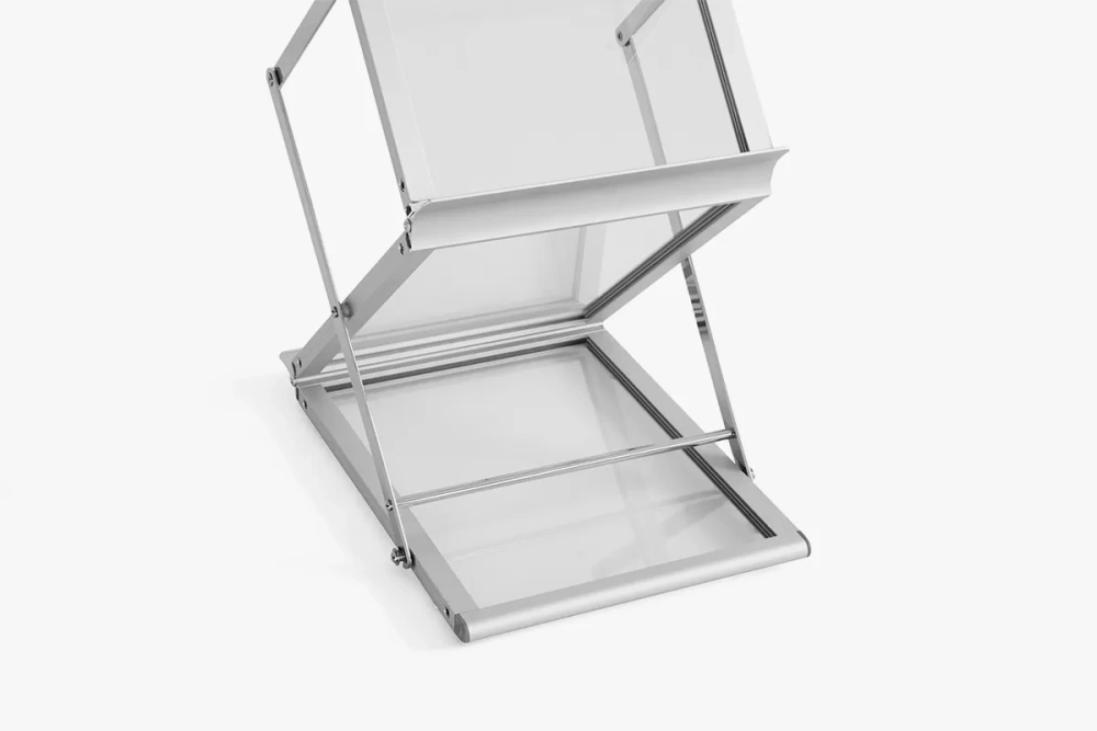 The adFolder brochure stand is made from a combination of durable aluminum and acrylic glass. This makes it not only elegant but also resistant to damage.