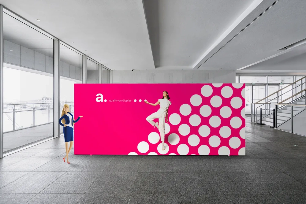 Trade show booths: Illuminated advertising banners placed around your booth will clearly define the boundaries of your exhibition space. They can also serve as separators to create dedicated trade sections, such as a relaxation zone.