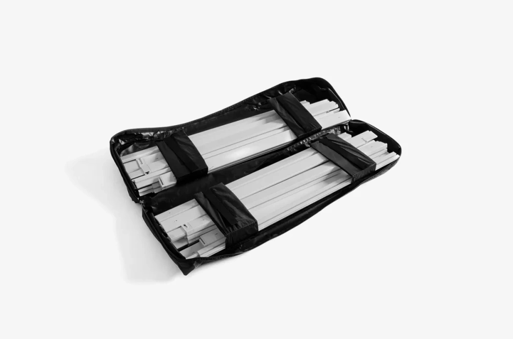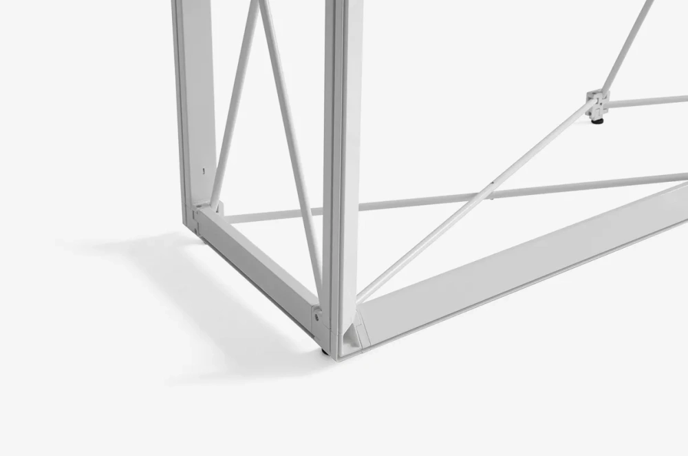 The adWall Edge is based on an accordion-style construction that should take no more than a few minutes to set up. Aluminum elements are connected with snap fasteners, making the assembly tool-free. You can transport the entire structure in the bag included with the product.