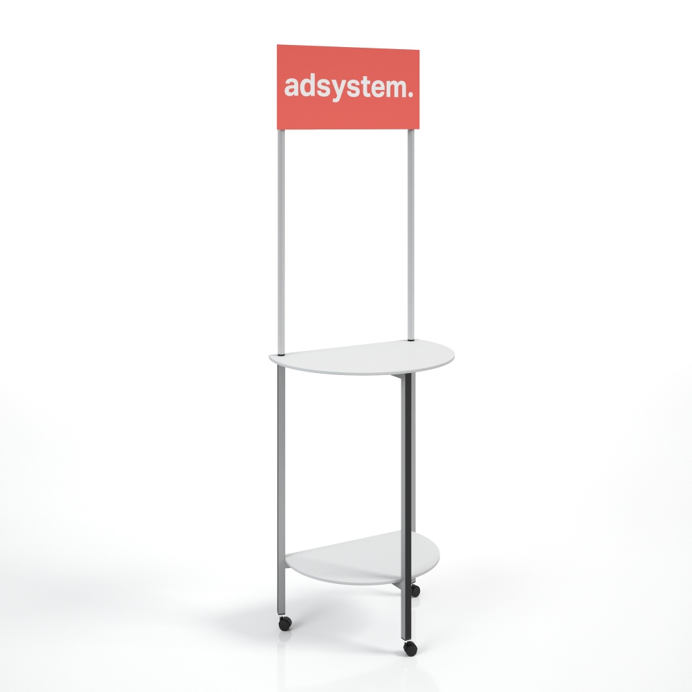 Assembling the adBox Hit Mini does not require tools and can be completed in just a few minutes. The powder-coated aluminum frame and the furniture board top provide durability and stability. Despite its compact size, the promotional stand can support products weighing up to 100 kg.