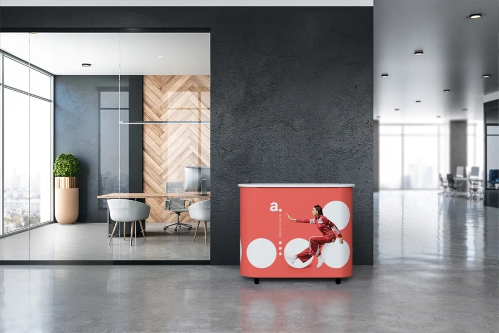 Thanks to the innovative Velcro system, adTribune Elypse allows for easy exchange of prints. This solution enables quick adjustment of advertising communication to different events, making the counter a versatile and multi-functional promotional tool.