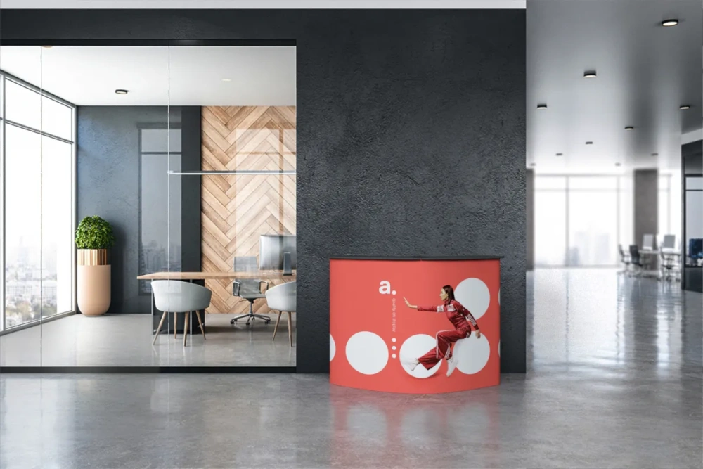 Trade shows: promotional counters offer a large advertising space and functional shelves for product display. The sturdy construction and ease of assembly make them an excellent product for dynamic trade show events.