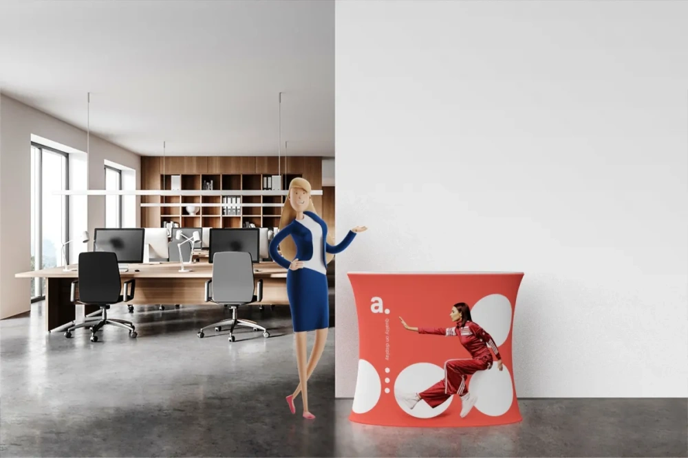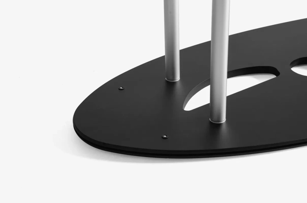 The adTribune Oval Maxi features a large advertising surface, allowing for effective brand presentation. The printed material wraps around the entire structure, making your graphics visible all around the stand. Additionally, the option to change prints makes the table easily adaptable to different promotional campaigns.