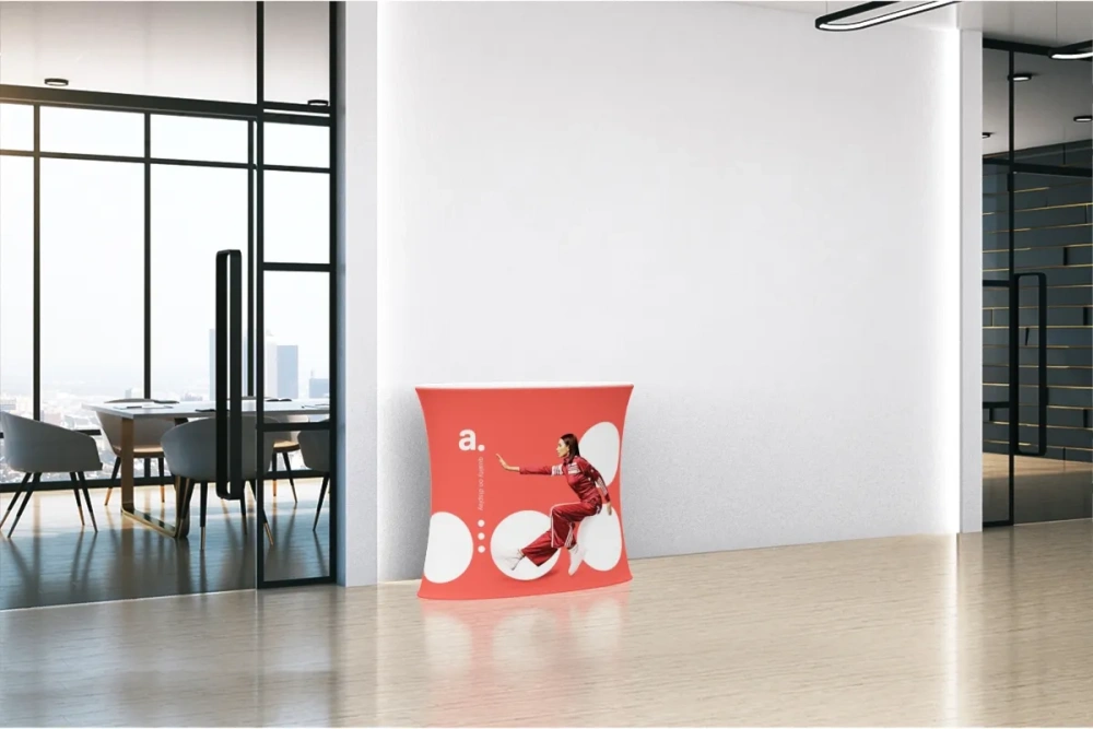 The solid construction of aluminum tubes and MDF board ensures not only durability but also an aesthetic appearance that underscores the professionalism of your brand. The textile prints are made of high-quality materials that can be easily replaced, making the table usable for many years in various promotional campaigns.