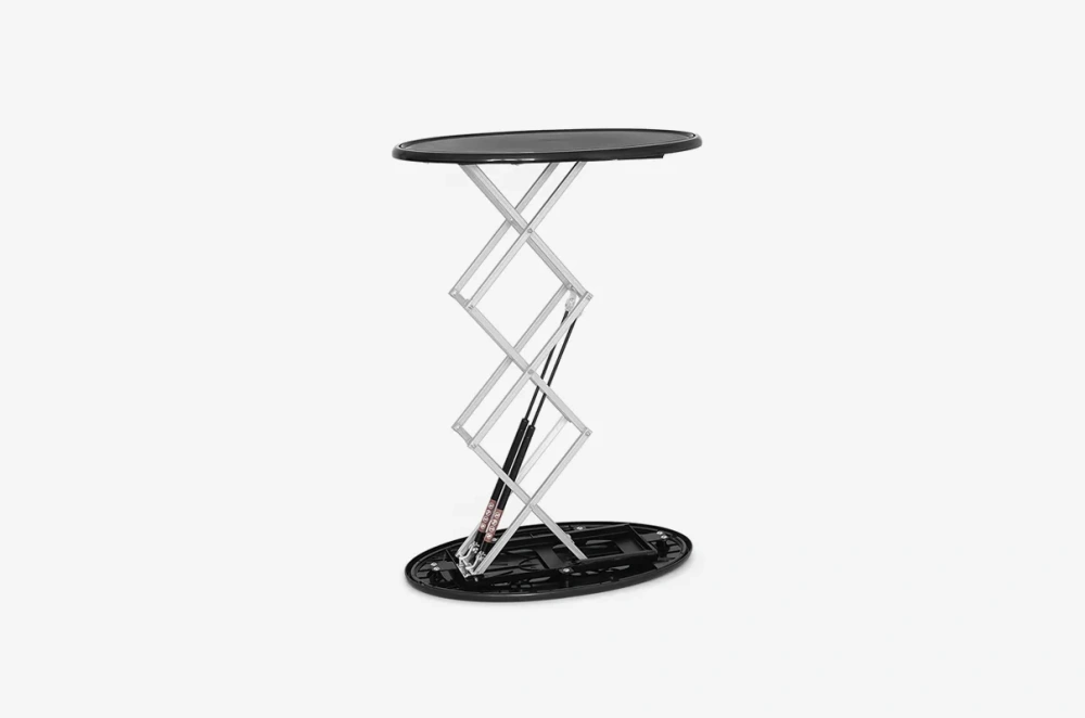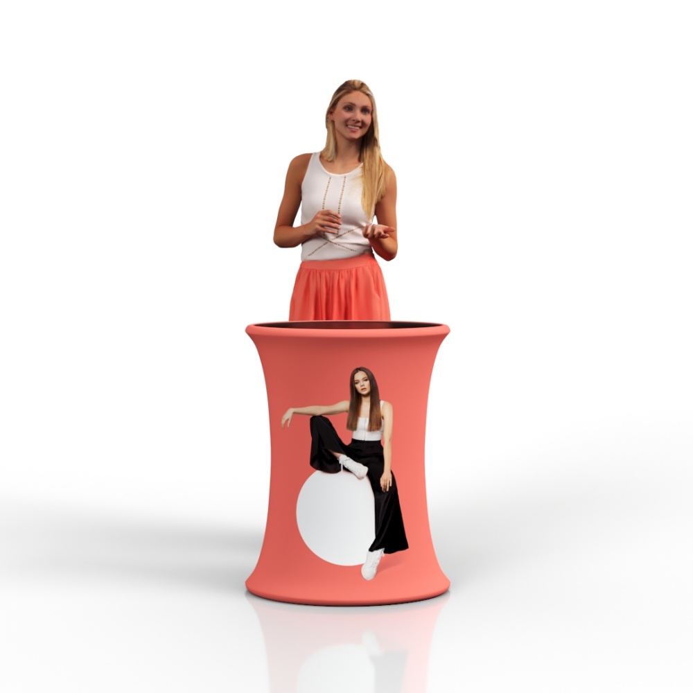 The adTribune Quick features a pneumatic system that ensures quick and effortless assembly. Simply lift the countertop, and the structure automatically rises. This tool-free process makes the counter ready for use in just a few seconds – an ideal solution for dynamic events.