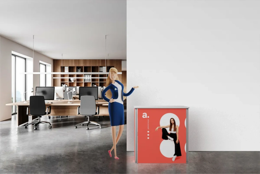 The adTribune Seg trade show counter allows for custom graphics printed on polyester fabric, using modern printing techniques that deliver vibrant colors and sharp details. This feature makes the counter an ideal tool for professionally representing your brand at events.