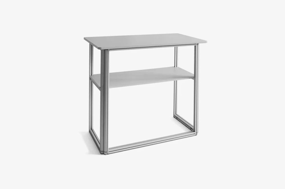 The counter's assembly is quick and tool-free. Simply set up the base, attach the shelf and top, and your counter is ready to use, enabling efficient stand preparation. After the event, the structure folds easily into compact dimensions and fits into the included transport bag, simplifying transportation and storage.