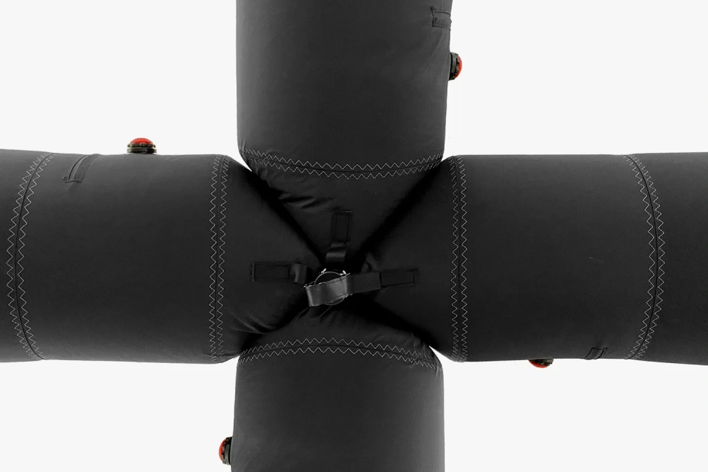 One of the unique features of the adTent Air Premium inflatable tents is their visually striking structure. The presented model is a spider-shaped tent, consisting of four supports that converge at the top of the structure, creating a modern and captivating design.