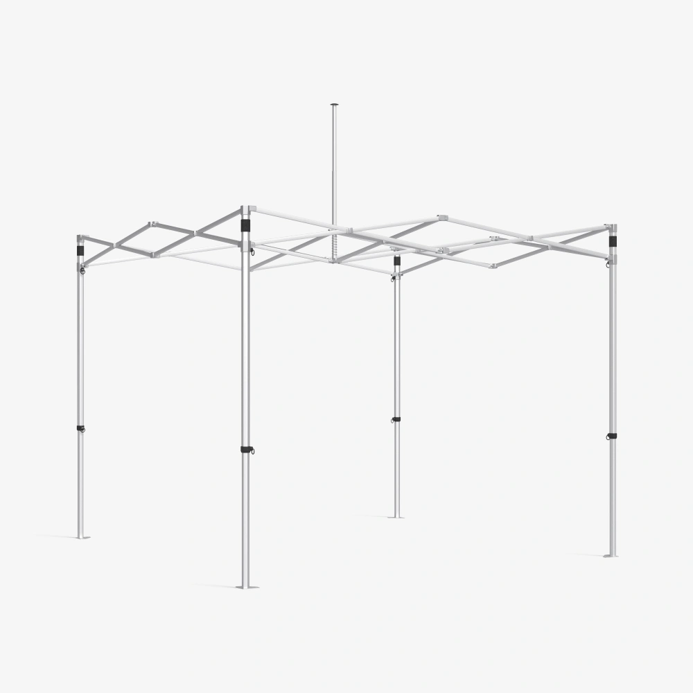 Setting up and folding the tent is very easy, and even a person with no experience in manual work can handle this task. This is thanks to the special construction of the tent's roof, consisting of aluminum frames connected to each other. To set up the express tent, simply pull the tent's legs, spreading them in the intended directions. As a result, the frame will unfold automatically. There is no need to use any tools during assembly and disassembly. Therefore, transporting additional tool containers will not be a concern.