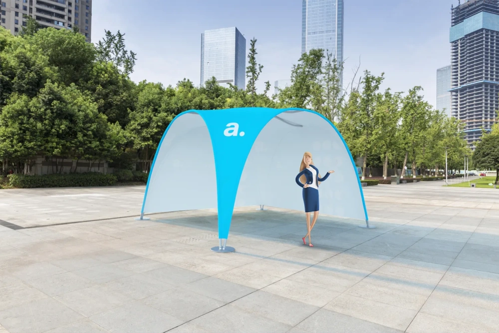 The AdTent Vario tent is also ideal for events in indoor spaces such as trade fairs, promotions, and exhibitions in shopping centers. In these cases, the tent not only serves as a space delimiter but also as an advertising platform that attracts public attention.