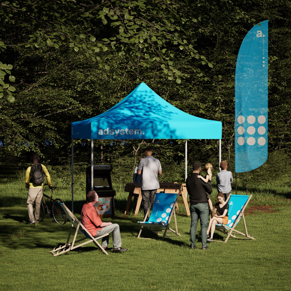 3 adDeck loungers - event furniture that will not only provide you with comfortable seating but also strengthen your advertising message. The loungers are equipped with a solid, impregnated polyester fabric. It is on this fabric that we will place your logo or corporate graphics. Meanwhile, the structure of the loungers is made of hard beech wood, which provides solid support for the seat, capable of holding a load of up to 120 kg. The whole creates a comfortable seat with a three-step backrest height adjustment.