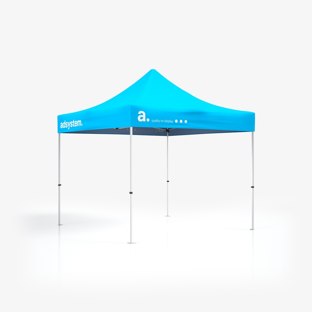 adTent Express pop-up tent in the size of 3x3 m, which will protect you from the sun and rain and will attract the attention of recipients. The advertising tent included in the set is based on an aluminum construction, which allows for a very quick setup. The tent is topped with a textile roof, on which we will place your personalized graphics. Importantly, the fabric used in the production of the tent is impregnated, which means it does not let moisture through. Dimensions of the tent: 300x300x340 cm.
