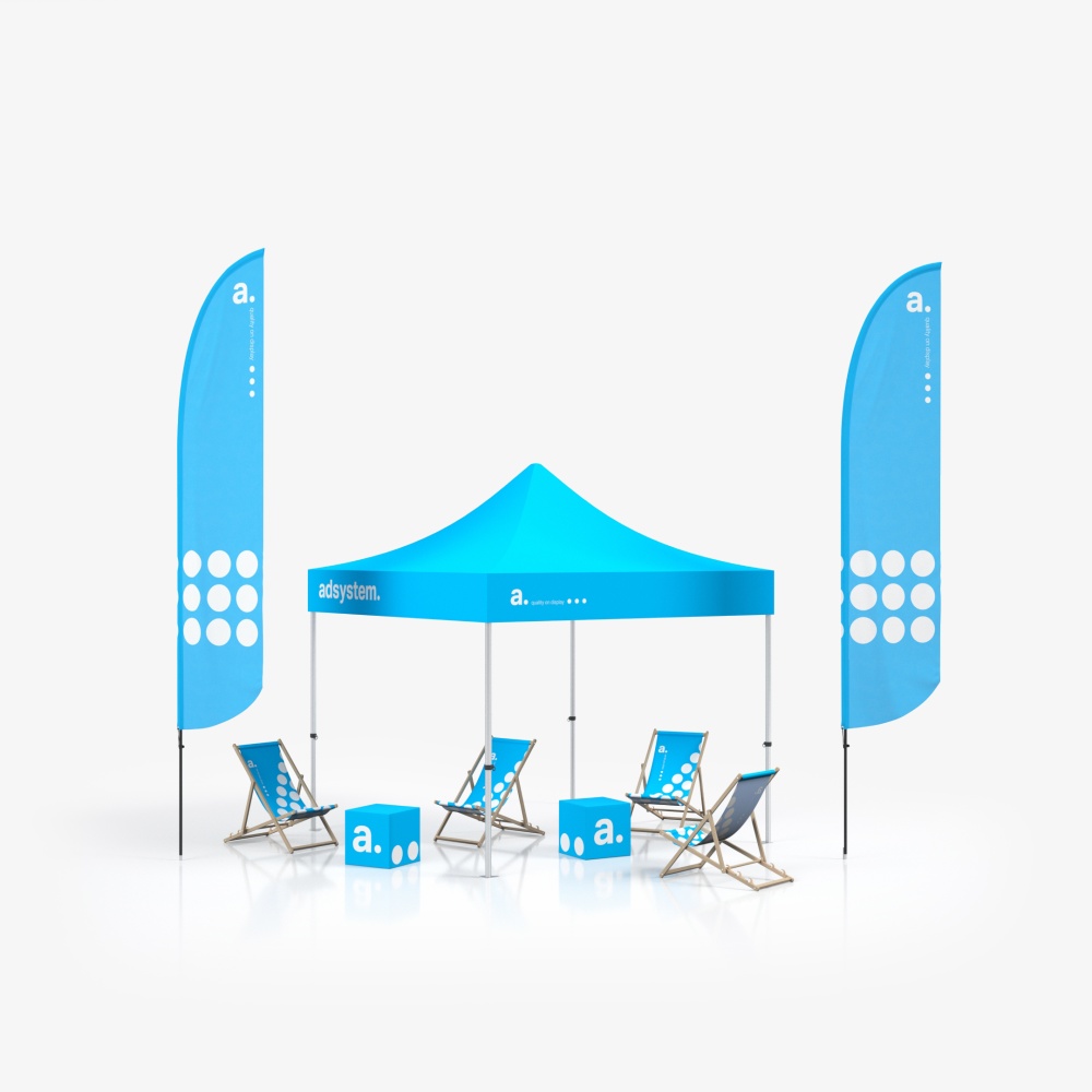 4 adDeck advertising loungers - serve as both an advertising medium and comfortable seating. The loungers are made of solid beech wood construction and impregnated polyester fabric. Your corporate symbols will be printed on this fabric. The products also feature a three-step backrest height adjustment, and their maximum load is 120 kg.