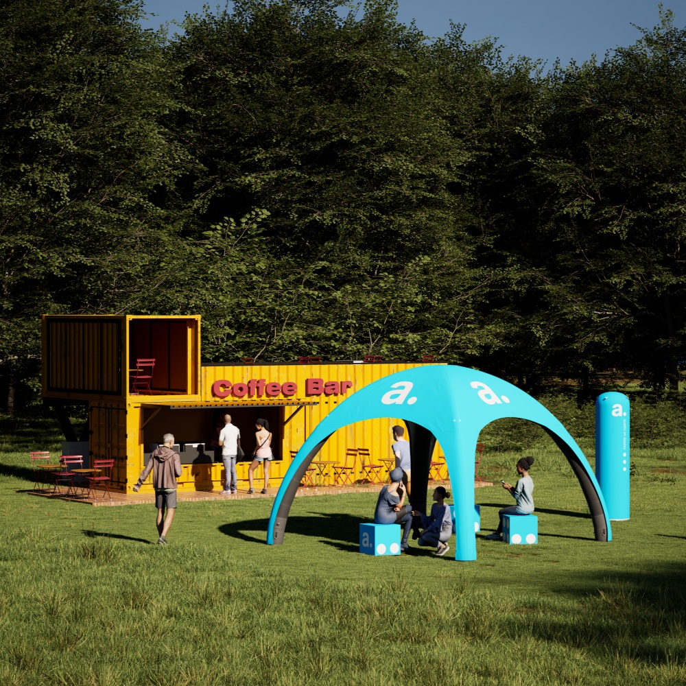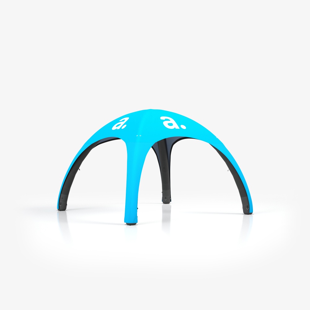 adTent Air Premium advertising tent, whose structure is based on four inflatable supports. Each of the balloons is covered with reinforced fabric, and thanks to special valves, the air does not escape from them. As a result, the structure maintains stability and does not need to be pumped up over time. The roof of the adTent Air Premium advertising tent is made of polyester fabric impregnated, which does not absorb moisture. It is on it that we will place your personalized graphics, thanks to which the tent will not only protect against the sun or rain but will also serve as an advertising medium.