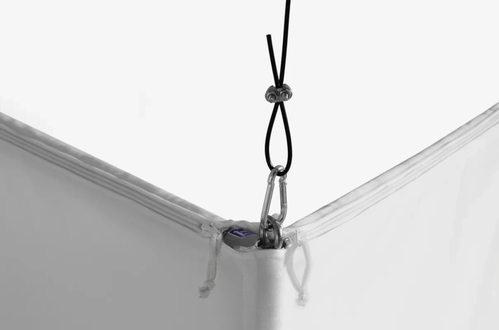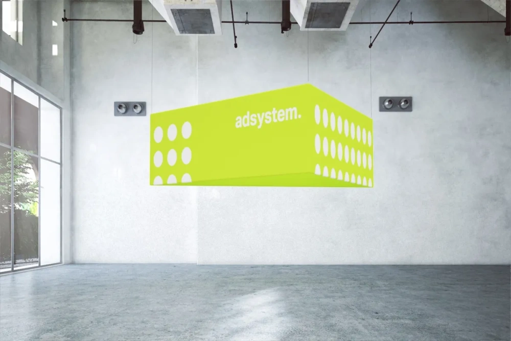The hanging construction of Vario Trifloat allows the advertisement to be placed above the booth, increasing its visibility even in large and crowded spaces. This placement ensures that advertising messages are visible from various points.