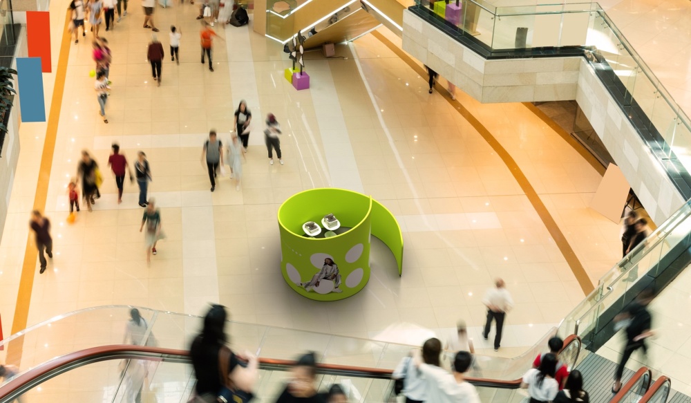 Promotion in shopping centers: With its unusual form, adWall Vario In effectively captures customers attention, becoming the focal point of promotions in a shopping mall.