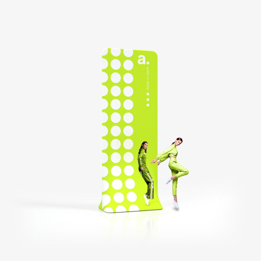 The adWall Vario Tower is characterized by a solid aluminum construction, which ensures full stability even at large stand sizes. The printed material, produced using an eco-friendly sublimation method, perfectly fits the frame. As a result, your advertisement always looks aesthetic and professional.