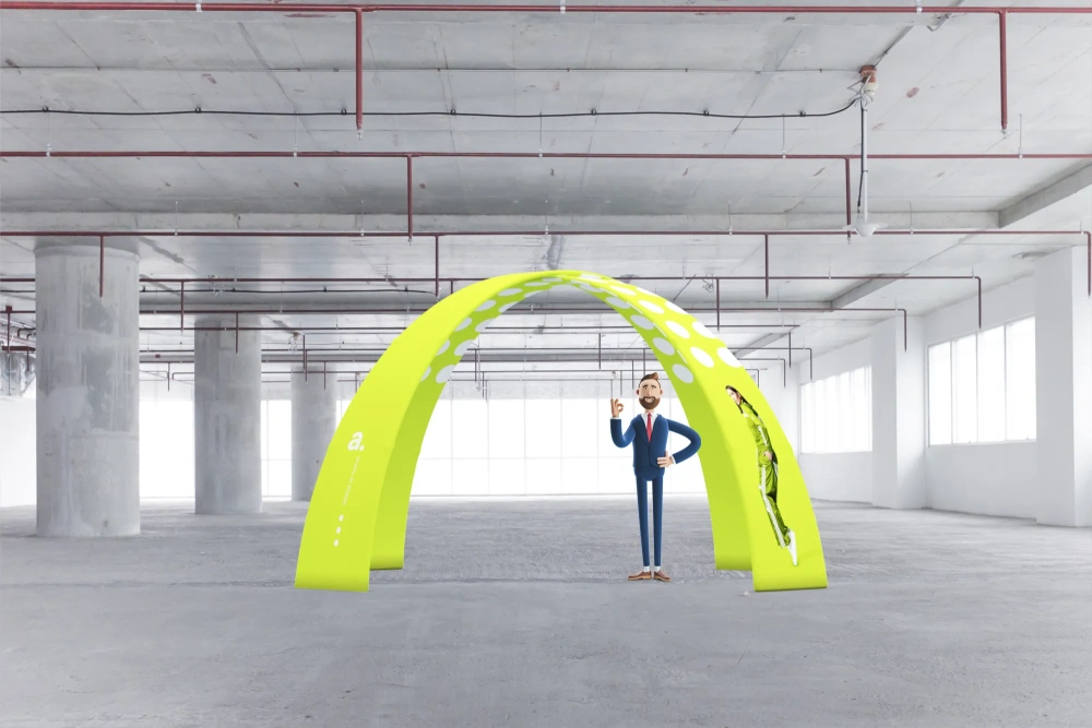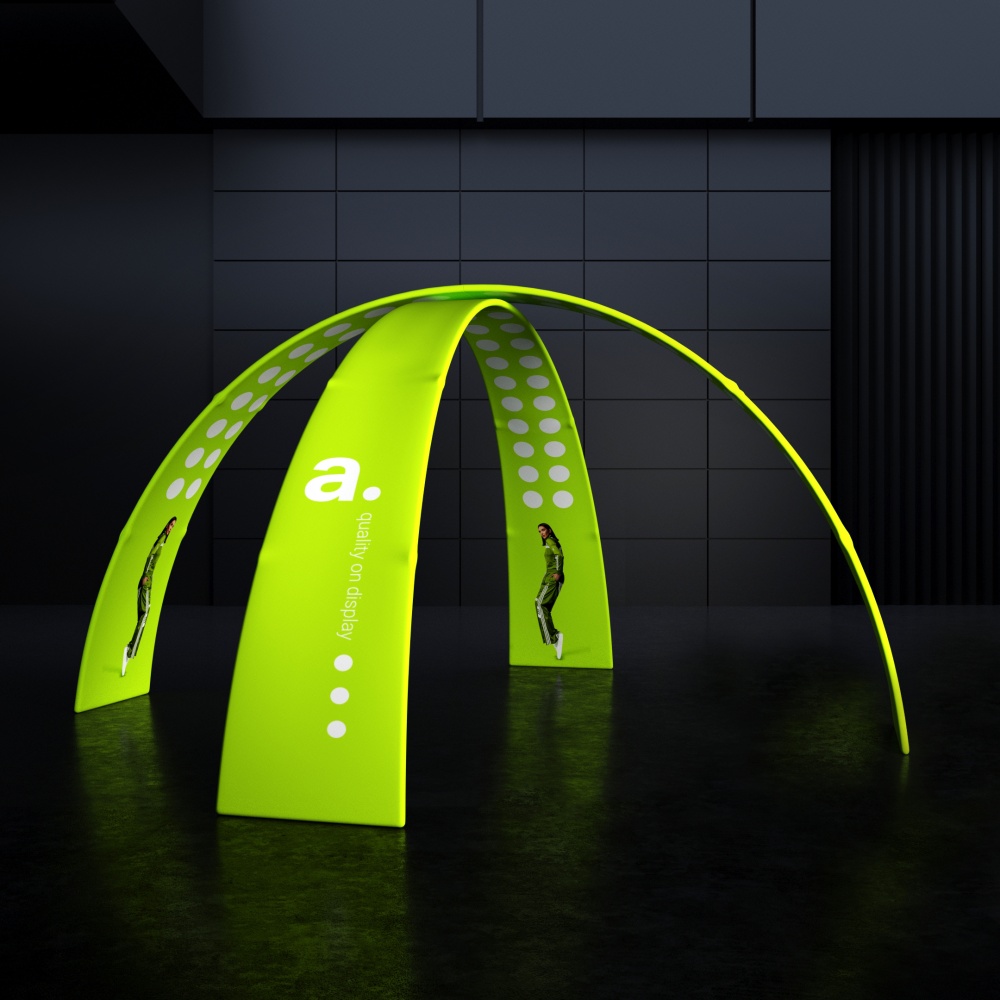 The dome-shaped textile arch consists of an aluminum structure and textile prints. Here are the key benefits of using this product: