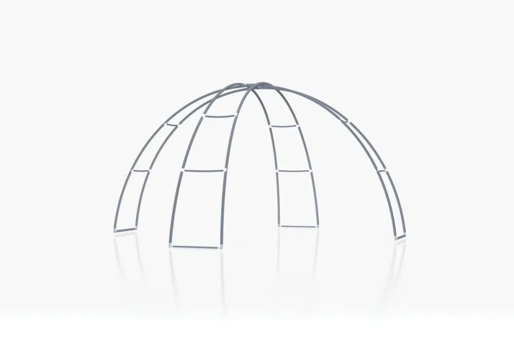 Tool-free assemblyThe structure of the dome-shaped textile arch is made up of aluminum tubes that connect without any tools, thanks to a locking system.