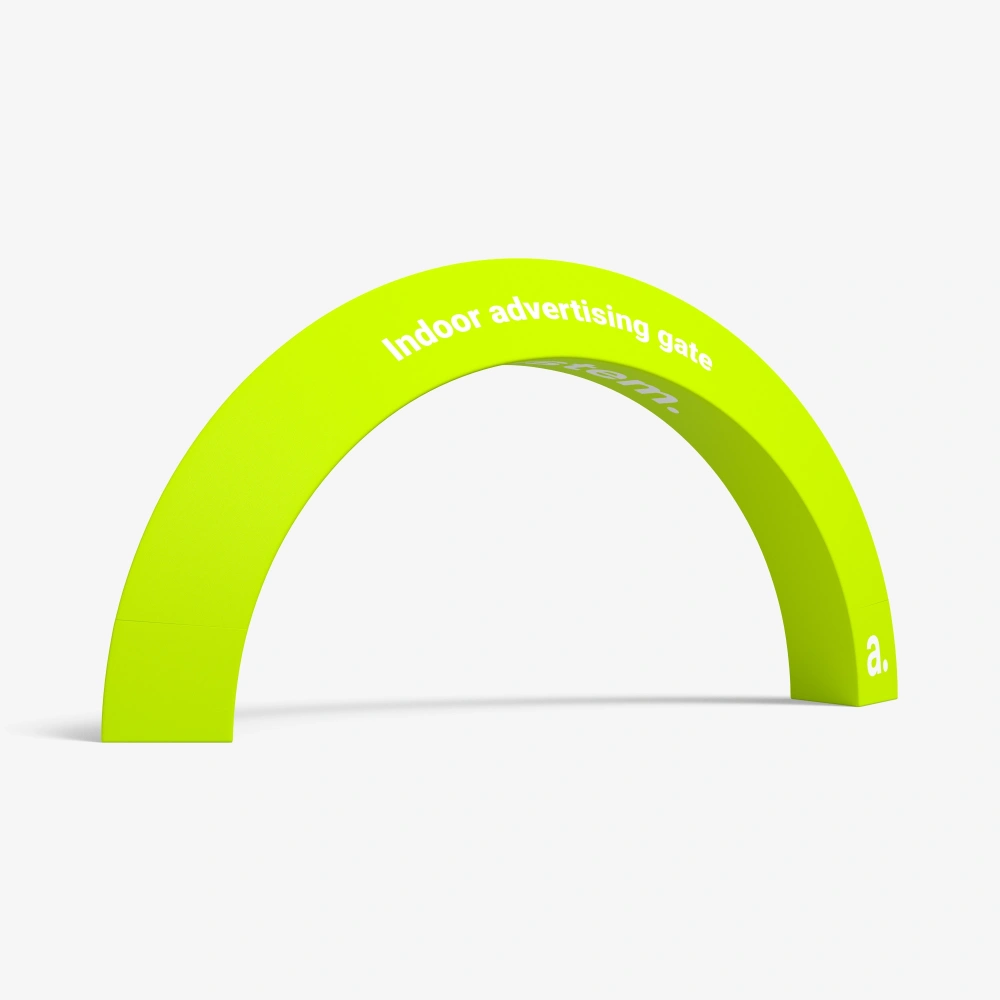 The Vario Gate is characterized by its distinctive three-dimensional arch form. This shape catches the eye and allows for effective advertisement display, as graphics and text messages are clearly visible.