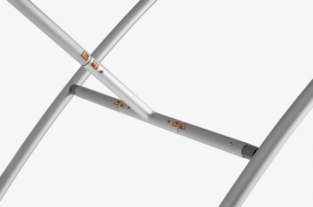 The Vario Gate features an aluminum structure that is both lightweight and durable. To set up the gate, no tools are required, as the assembly is tool-free thanks to the snap-lock system. This significantly simplifies and speeds up the assembly process. Even individuals without assembly experience can quickly and efficiently set up the gate.